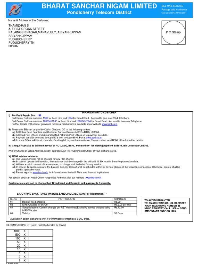 Download Bsnl Land Line Bill - Bsnl is constantly working for increasing the broadband unlimited speed for the enhanced experience of the customer in urban as well as rural areas.