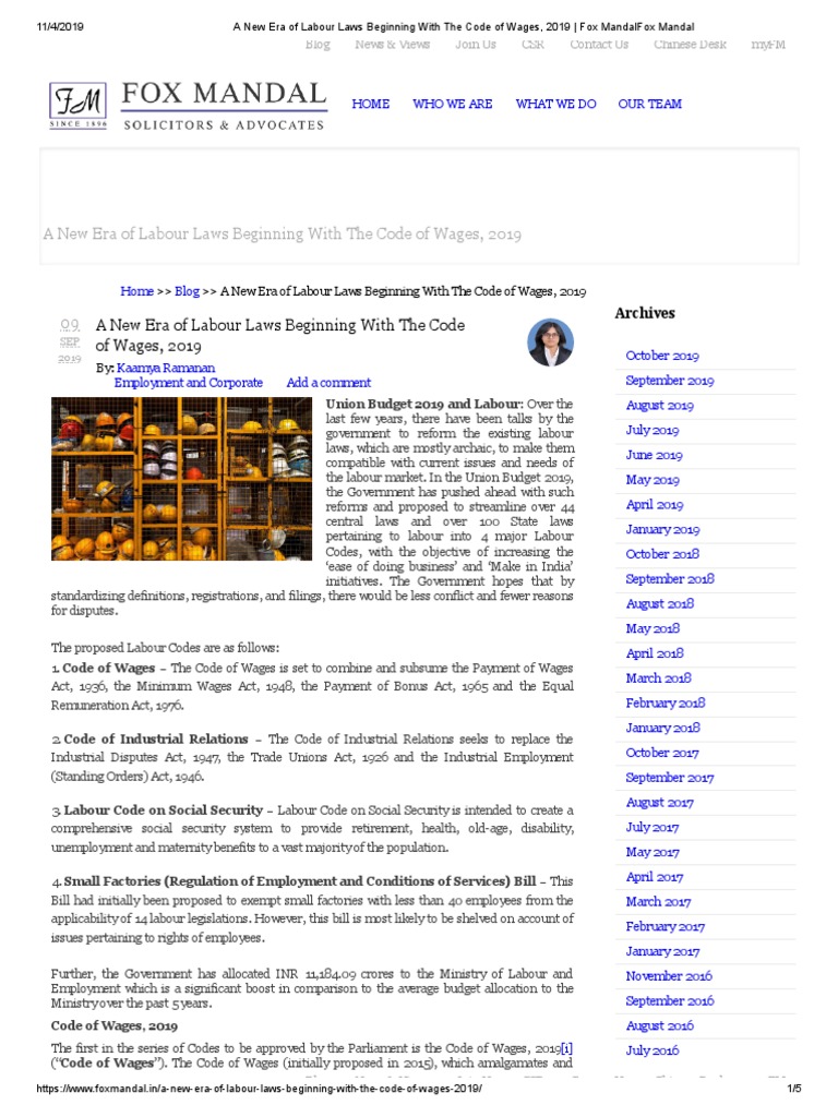 A New Era Of Labour Laws Beginning With The Code Of Wages 2019 Fox Mandalfox Mandal Wage Employment - The minimum wages act, 1948 and.