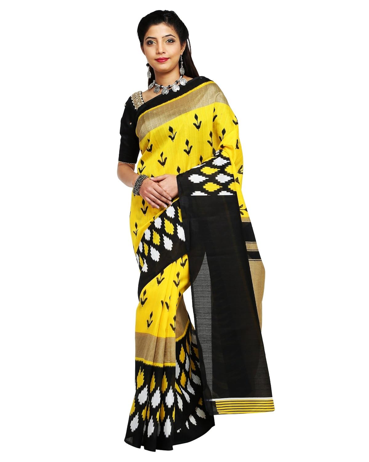 Buy Yellow And Black Katan Silk Saree With Floral Print And Black Anchal At Amazon In - Shop indian katan sarees online.
