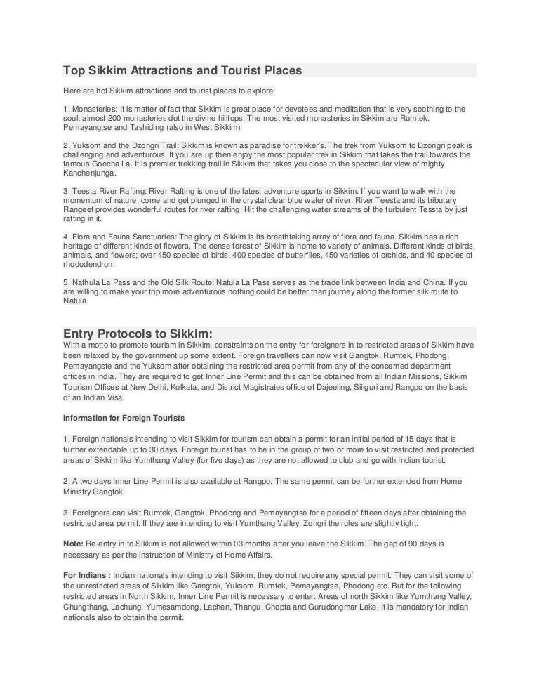 North Sikkim Permit North Sikkim Permit / Indian nationals intending to visit sikkim, they do not require any special permit.