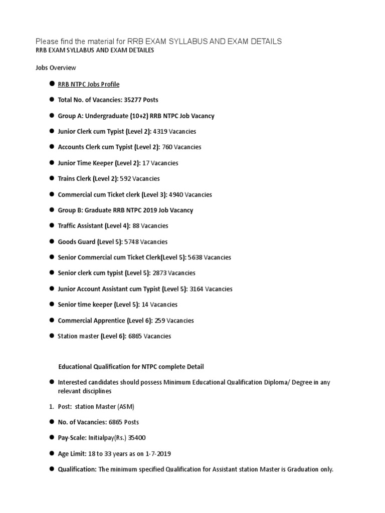 Rrb Station Master Syllabus / Rrb ntpc syllabus is available.